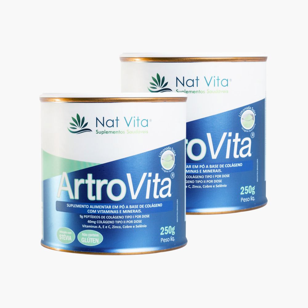 O ArtroVita Da Nat Vita, é um composto de colágenos do tipo I e II, Vitamimas A, E, C e Zinco.