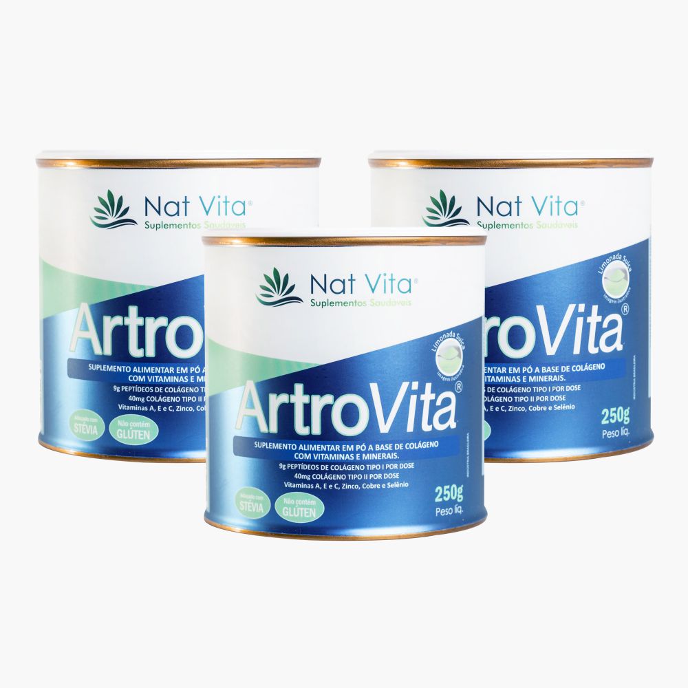 O ArtroVita Da Nat Vita, é um composto de colágenos do tipo I e II, Vitamimas A, E, C e Zinco.